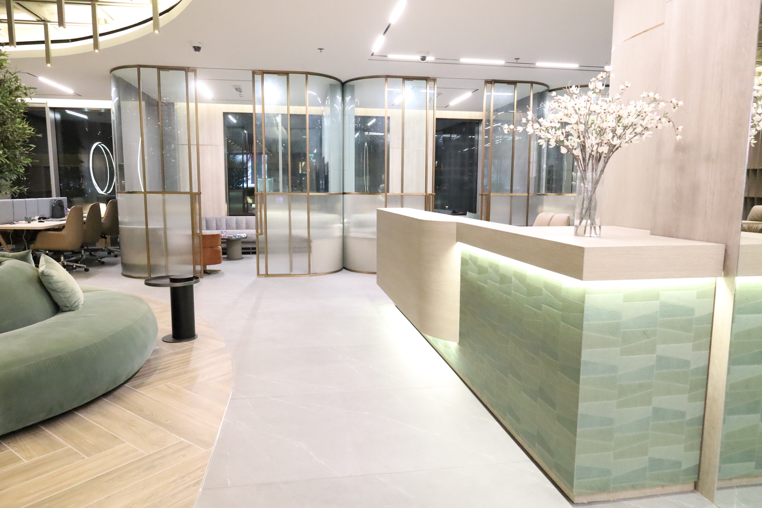 Tasmeer Developers approached us to create a workplace that was modern, professional, and designed to impress. Our team began with the lobby and reception, where we designed custom desks, branding elements, and comfortable waiting zones that communicate trust and quality. Meeting rooms were built with ergonomic seating and carefully planned lighting to ensure seamless collaboration. Flooring and finishes were selected to handle heavy use while maintaining their visual appeal for years to come. By combining corporate elegance with practical planning, the design reflects Tasmeer Developers’ forward-looking identity. The end result is an office that feels sophisticated while fully supporting day-to-day operations. It demonstrates how The Zoom Interiors and Contracting consistently delivers results that elevate a company’s image and efficiency in the field of commercial interiors.